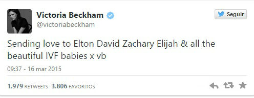 Victoria Beckham, sin meterse demasiado en esta polémica, apoyó con un mensaje a su amigo y a las familias que han tenido hijos a través de la fecundación in vitro.