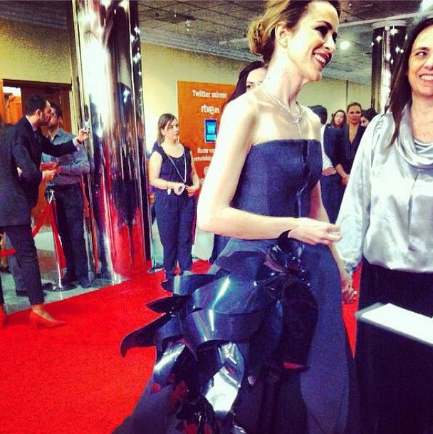 El toque de color ha venido de la mano de las actrices como María León vestida de verde con un maravilloso vestido asimétrico de Lanvin y la nominada a mejor actriz Inma Cuesta con un vestido azul de Iván Campaña que pesaba siete kilos.