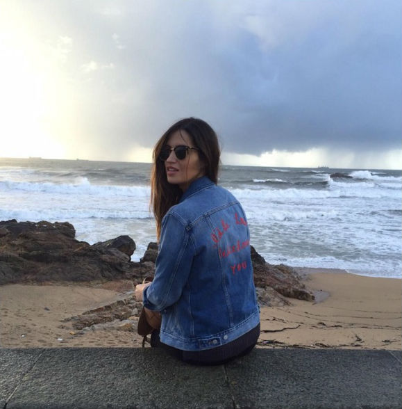 La estética de los 90 ha llegado sin previo aviso a los street style y pasarelas de medio mundo. Ella sabe cómo llevar esta moda sin parecer excesivo, empleando una original cazadora vaqueras con mensaje en la espalda. ¡Las gafas de sol Ray Ban son sus preferidas!