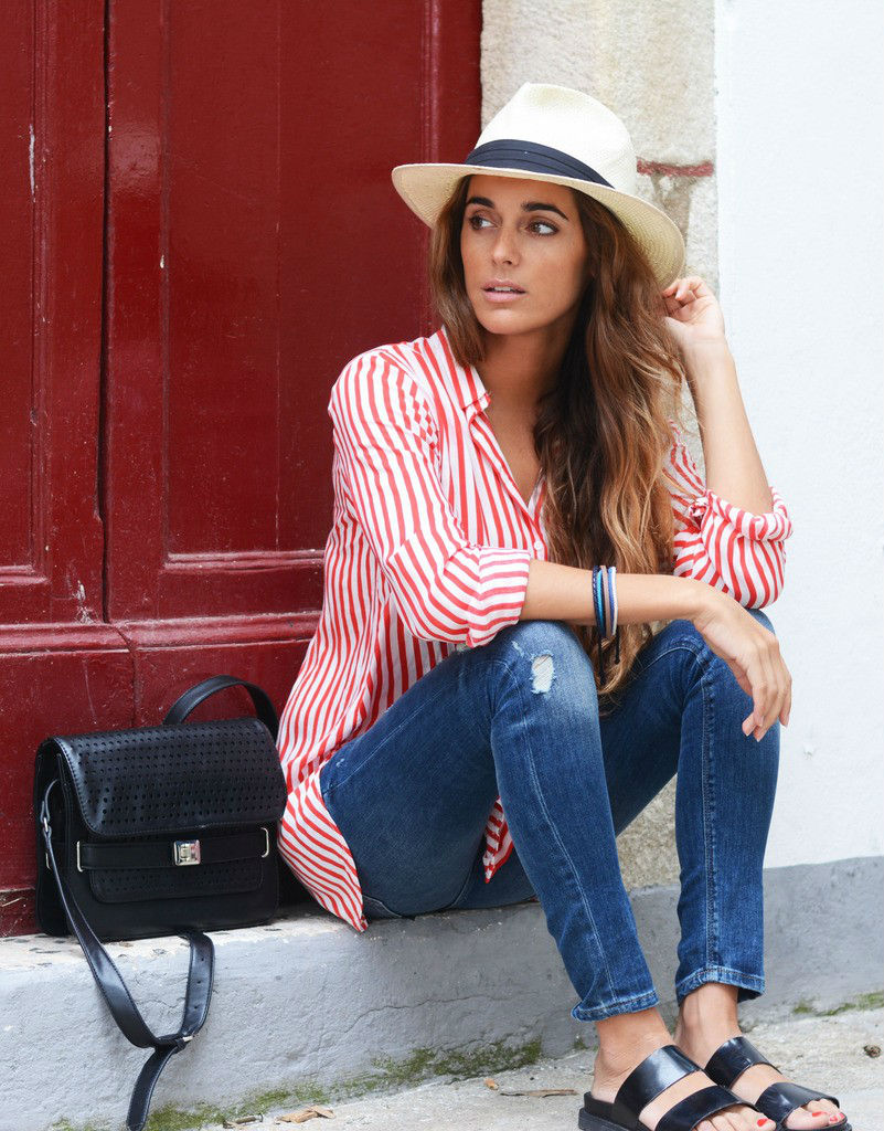 En el segundo, apuesta por unos pitillos skinny y palas negras de Zara. Como complemento sólo utiliza un sencillo sombrero de paja que aporta ese toque veraniego tan especial.