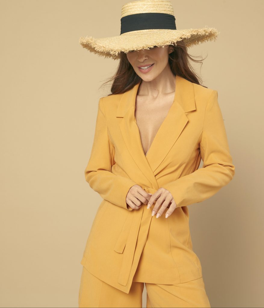 Para el toque final, puedes añadirle la blazer del mismo tono y unas sandalias doradas o plateadas, según tus preferencias.