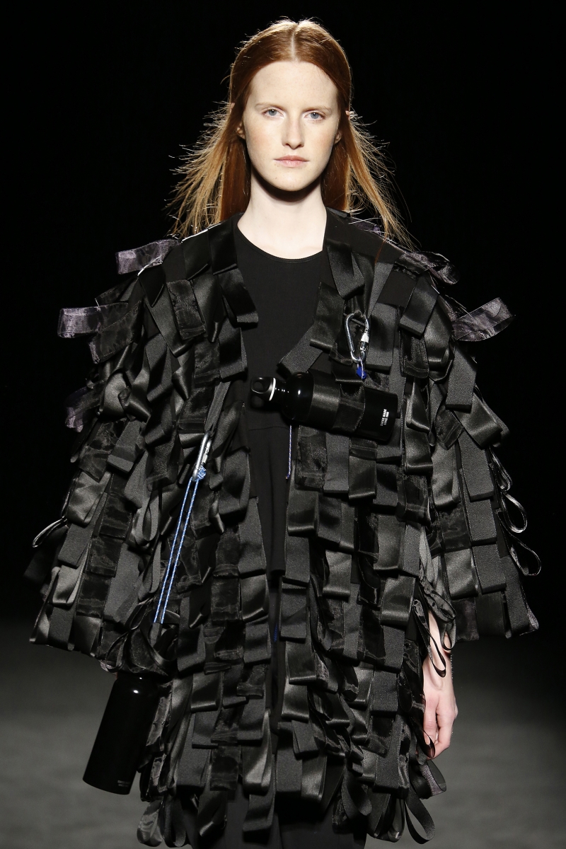 El pistoletazo de salida ha tenido el honor de darlo Carlota Oms, ganadora del Premio Nacional al Diseño Emergente de la pasada edición. Lo cierto es que la diseñadora no deja a nadie indiferente con sus prendas. Excéntricas y sin perder un ápice de originalidad. En cuanto a los tonos, Carlota se ha decantado por colores oscuros, que aportan elegancia al que la luce.
