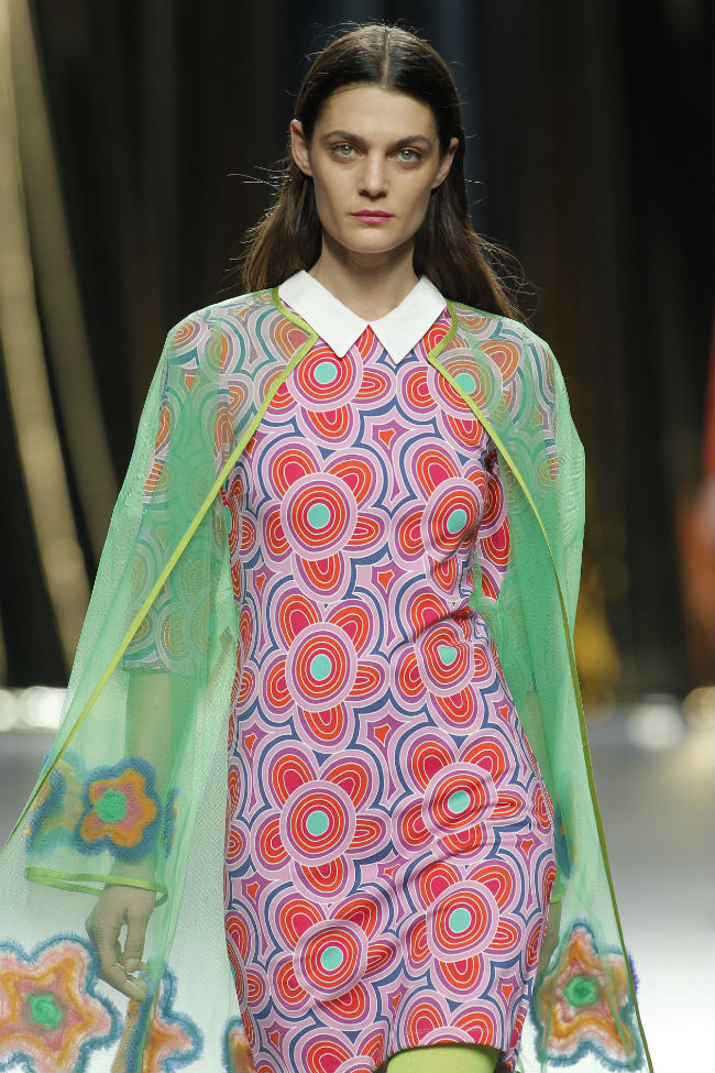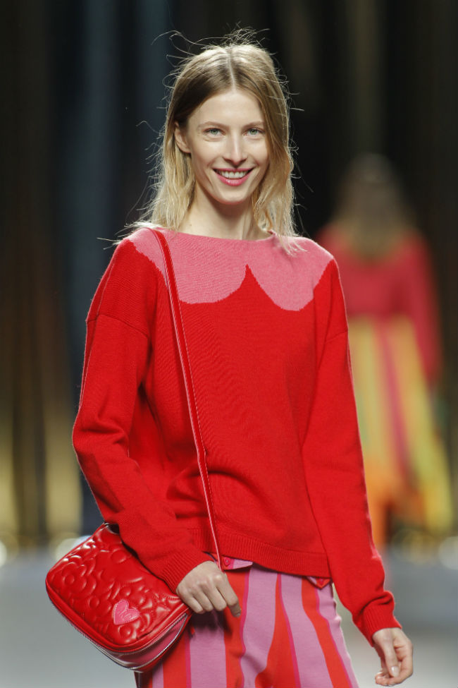 Ágatha Ruíz de la Prada retrata a una mujer con energía y picardía. La próxima temporada el espíritu desenfadado de los años 70’s se entremezcla con la odisea ‘agathista’ espacial, en homenaje a David Bowie. Las propuestas nos muestran una visión refrescante y coqueta que experimenta con telas inesperadas e inconfundibles iconos de la marca española. Colores como el naranja, el morado o el azul van a sorprendernos en esta primera jornada de MBFWM.