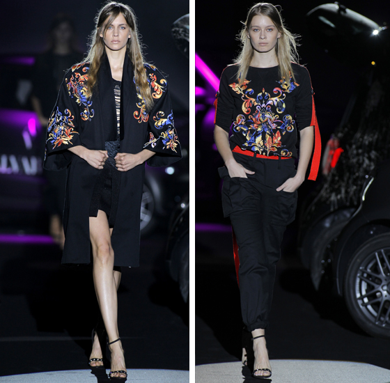 Alvarno vuelve a apostar por una estética contradictoria. Por un lado, se emplean tejidos fluidos y ligeros que, por otra parte, se combinan con motivos geométricos. Contrastes entre acabados mate y satinados. Animal print, tanto en pantera como en cebra, dibujados sobre teas de seda o en oro. Elementos futuristas que se entremezclan con encajes artesanales que han sido teñidos a mano. Con estas propuestas queda patente la clara innovación y experimentación de la que Alvarno es fan incondicional.