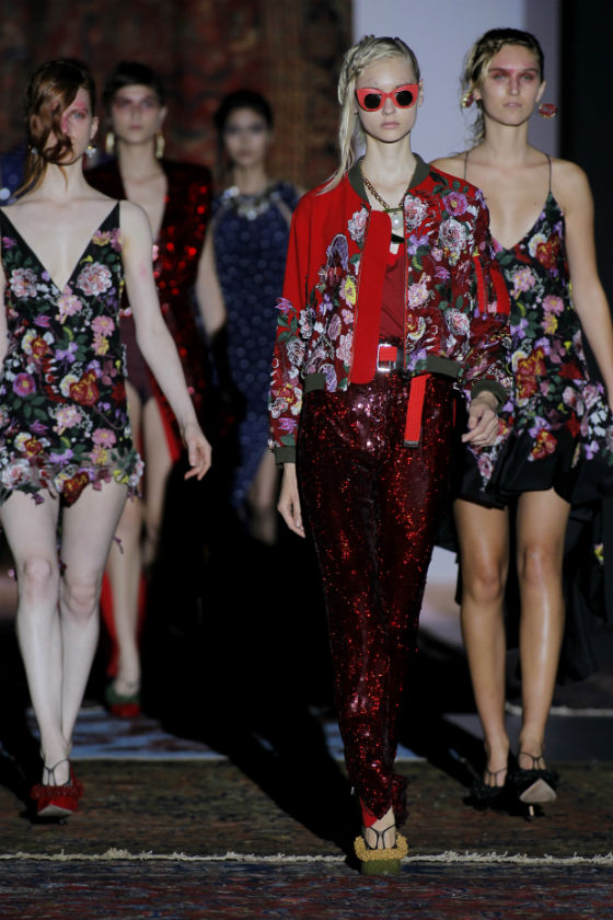Para Ana Locking la noche es joven, por eso no duda en incluir vestidos largos de fiesta que dejan con la boca abierta. Aberturas y perlas bordadas a lo largo de todo el tejido en azul klein o múltiples volantes rojos aderezados con transparencias.