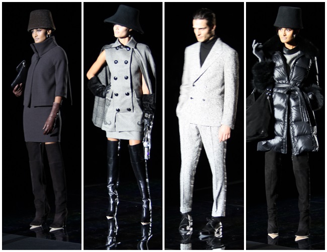 Sinfonía de grises con destellos de plata. Capas sobre vestidos cortos marcan un nuevo concepto de traje.