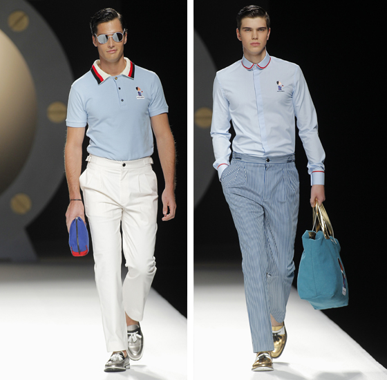 Los hombres que suben a bordo de este crucero conquistan por sus elegantes y sofisticados conjuntos compuestos por camisas, polos y pantalones. Al igual que las prendas femeninas de esta colección, las prendas toman como punto de partida el mar en todo su esplendor.