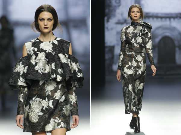 La diseñadora Juana Martín se inspira en la Andalucía profunda, compaginando el luto de las mujeres con la cal blanca que se emplea en las casas de esta zona geográfica. Se trata de una forma sofisticada de trasladar el folclore andaluz a una de las pasarelas más importantes.