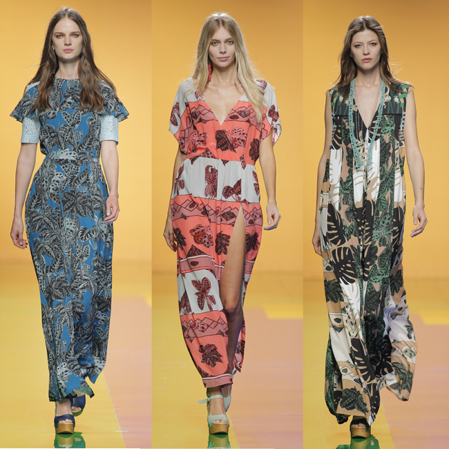 Los estampados se convierten en protagonistas de este desfile, recreando una naturaleza idílica representada por pequeños peces sobre plantas acuáticas y hojas de maranta sobre trazos de acuarela.