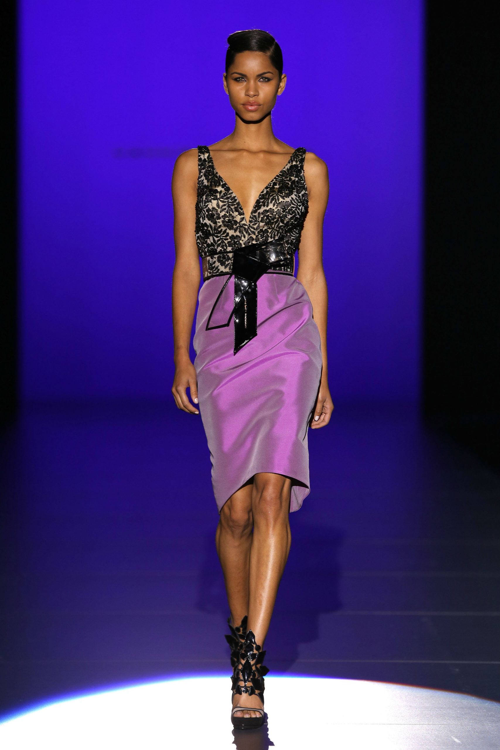 No podía ser de otra forma, el color negro es el hilo conductor de este conjunto de looks, donde el rosa orquídea, buganvilla, violeta imperial, rojo amapola, verde bosque o azul campanilla se dan cita en prendas ricas en matices. Las siluetas cortadas al bies se han convertido en parte del ADN de Habnnibal Laguna, una ténica creativa que el modisto emplea en muchas de sus colecciones.