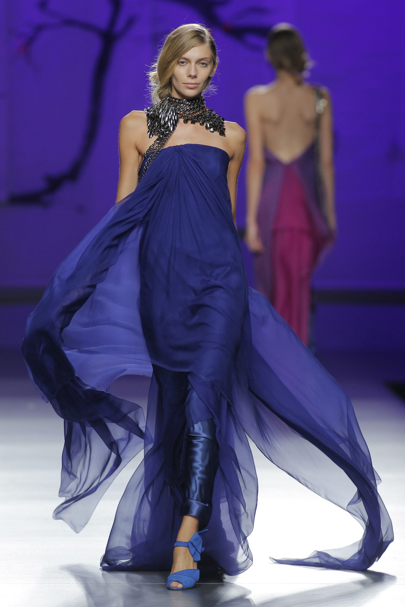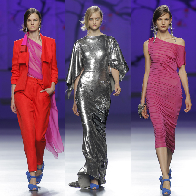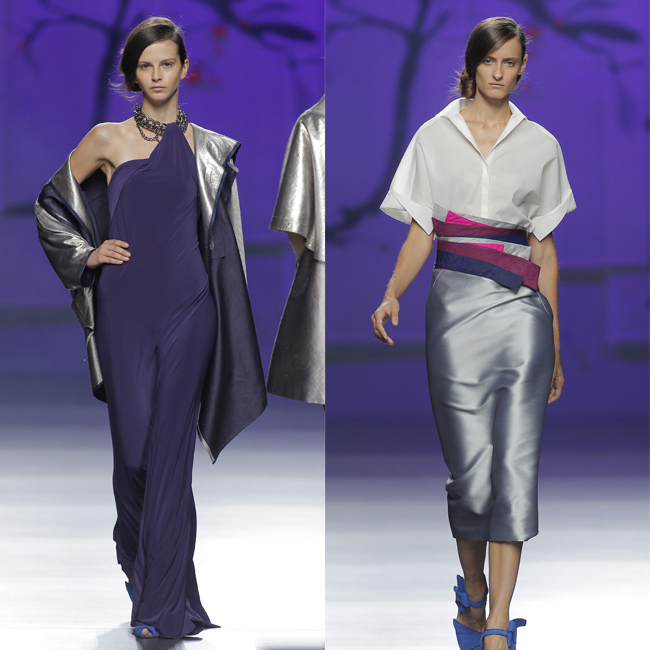 La paleta cromática choca radicalmente, la introducción de tonalidades intensas (azul, magenta, cliclamen y morados) junto con colores fríos (grises, metalizados, beiges y blancos) van a ser la clave principal de las nuevas propuestas presentadas en MBFWM.