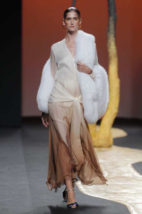 Sahel vuelve a mostrar el gran expertise de la firma tras años de experiencia consiguiendo dar a la piel una dimensión actual, que mantiene el patrimonio de la marca, cubriendo los hombros con estolas de pelo, y logrando la perfecta camisa de ante, cargada en esta ocasión del espíritu africano que dota de especial energía al desfile.