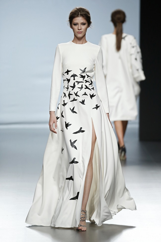 La colección ‘Take Flight’ nos permitió echar a volar en la Sala Bertha Benz de la MBFW en Madrid, el domingo 8 de febrero a las tres y media de la tarde. El minimalismo y el pájaro son las dos propuestas de estilo claves que Juana Martín presenta para la próxima temporada de otoño-invierno 2015/2016.