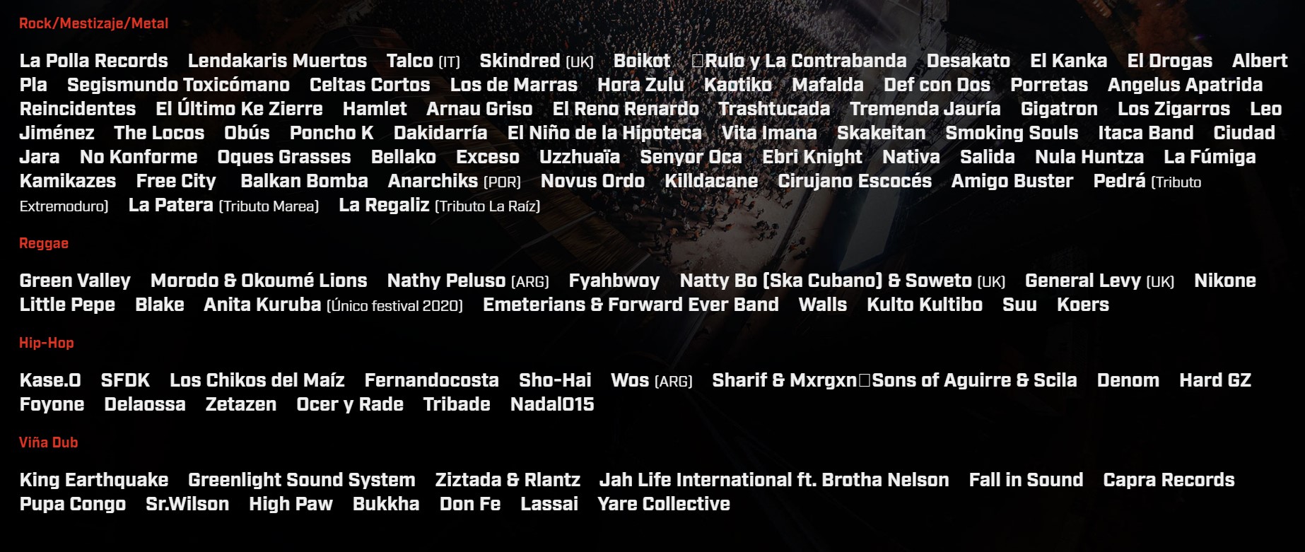 En el año de su 25 aniversario uno de los festivales más longevos de España se ha llevado un golpe muy duro fue de los primeros en posponer su celebración, en este caso de las bodas de plata. Hicieron todo lo posible para que fuese una de las ediciones más especiales de su historia con un cartel memorable con artistas como Kase O, SFDK, Lendakaris Muertos o La Polla Records, pero nadie tenía previsto una pandemia acompañado de una crisis munidal. Al poco tiempo que en España se declarara el estado de alarma la organización tuvo que suspender el evento previsto para el mes de mayo y traspasado del 8 al 11 de octubre del mismo año. También programaron un plazo para la devolución de entradas.