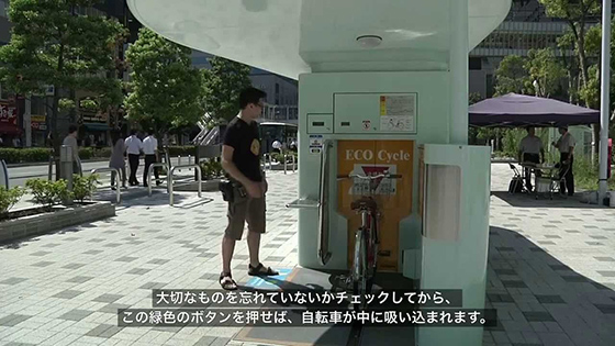 Aunque parezca muy futurista y alejada de nuestros tiempos, una de estas estaciones se encuentra cerca de la estación de metro de Shinagawa, en Tokio. Para utilizarlo, el usuario solo tiene que colocar la bicicleta en una plataforma que la atrape, descienda hacia la zona de almacenamiento, en un proceso que dura en total unos ochos segundos.