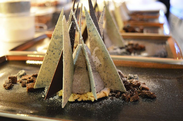Para rematar una velada perfecta, los asistentes finalizaron la cena con una cuidada selección de postres formada por Yuki Fuki (uvas infusionadas en zumo de arándanos y vodka, cremoso de cassis, agua de lichi y sake), Cordillera Blanca ( texturas cítricas con té verde y chocolate blanco Waina) y Fujiyama ( base rocosa de Andoa Noire, con texturas de sésamo negro, coco y chocolate blanco Waina).