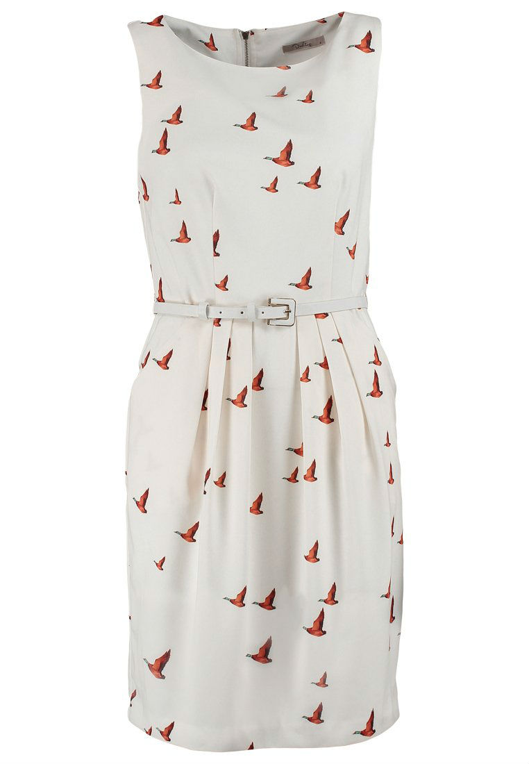 Si quieres lucir una prenda con un estampado distinto al que estamos acostumbrados, el print de patos con falda tulipán será tu mejor opción. Vestido de Zalando.