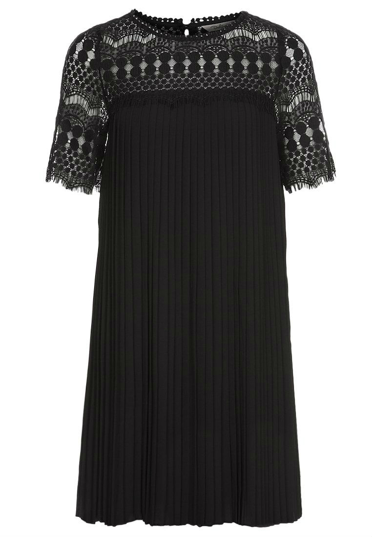 El little black dress forma parte de nuestro fondo de armario por ser un básico. En este caso se transforma para crear un modelo único con plisado y encaje en los hombros y el cuello. Vestido de cóctel de Zalando.