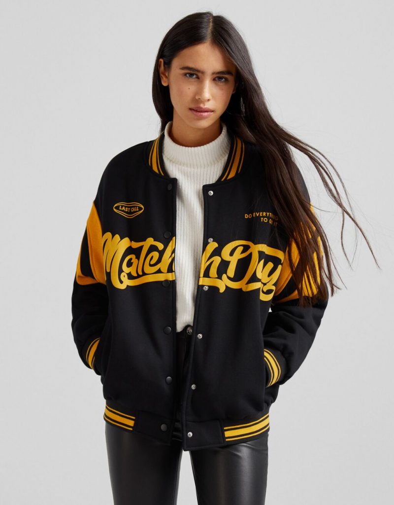Estas cazadoras de inspiración americana tuvieron su época dorada hace pocos años atrás y ahora, están de vuelta. Si te deshiciste de la tuya estás de suerte porque en Bershka puedes encontrar varias de ellas, como este modelo disponible en seis colores distintos. Para darle un toque más actual lo ideal sería combinarla con un par de vaqueros rectos.