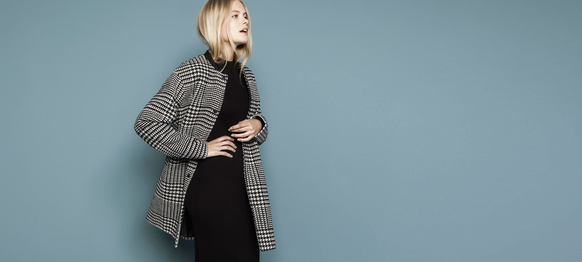Con print escocés, este abrigo en blanco y negro formará un combo único con el outfit con el que decidas llevarlo.