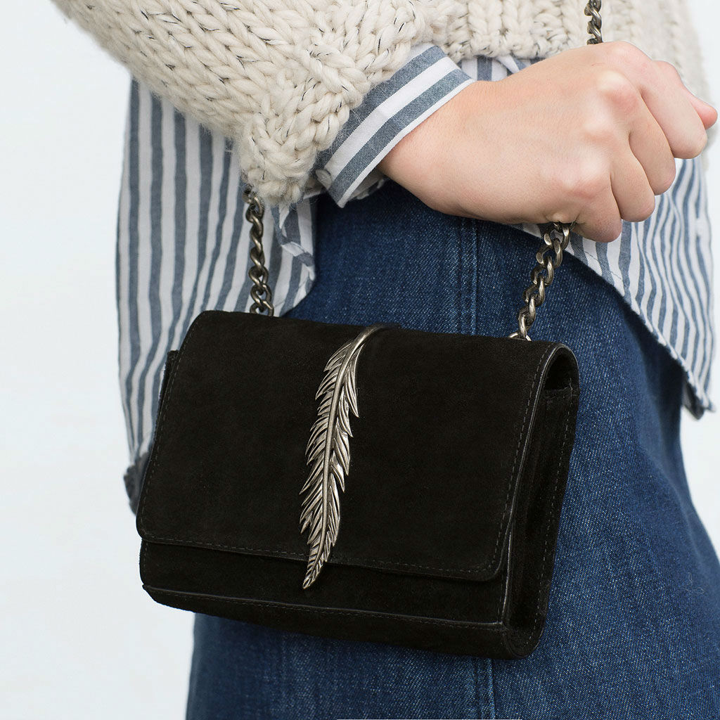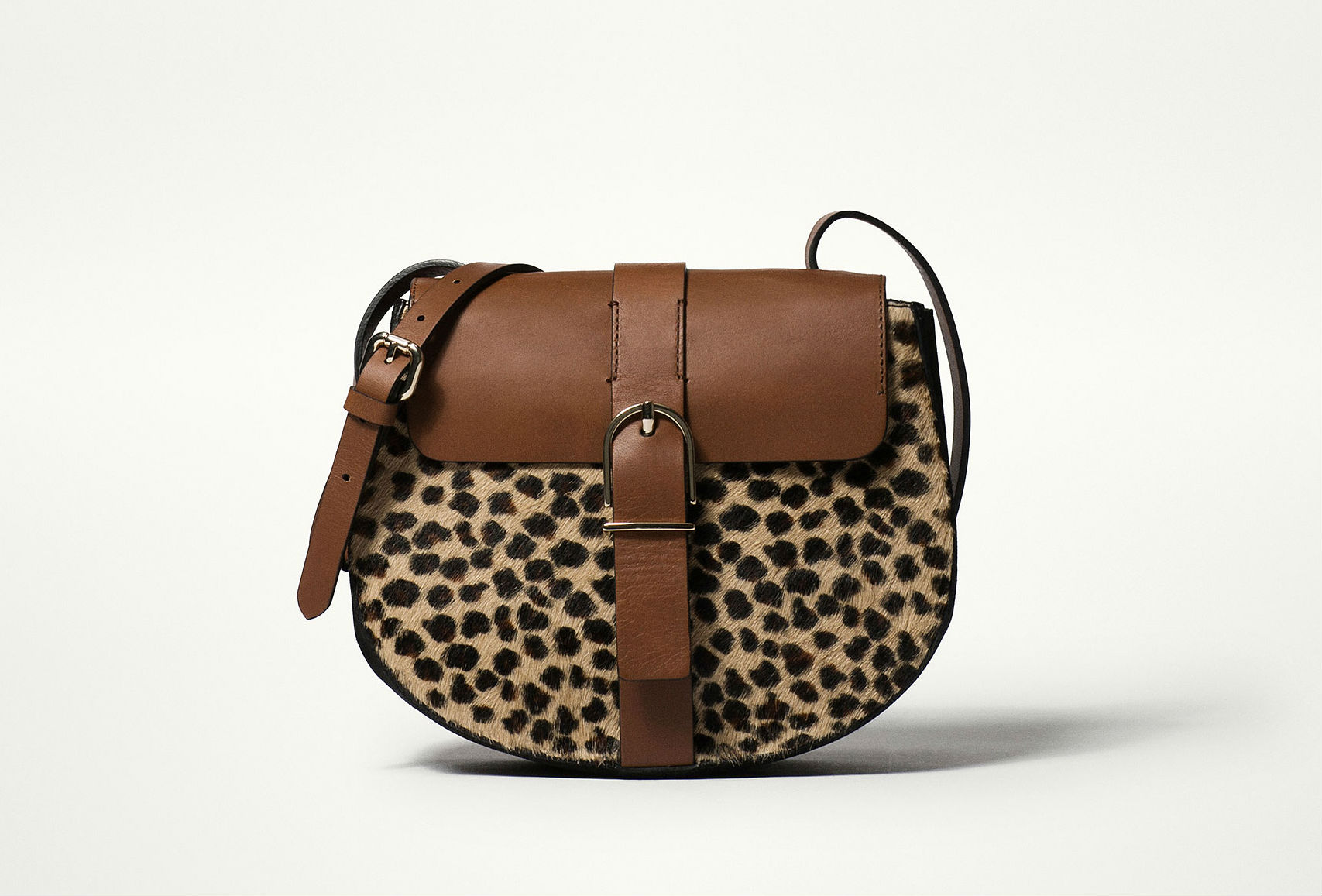 Massimo Duti escoge la versatilidad como eje principal de sus bandoleras. Nuestros favoritos son estos dos it bags, uno con print animal y forma redondeada (similar al ya conocido Drew de Chloé) y otro con aplique de tachuelas.