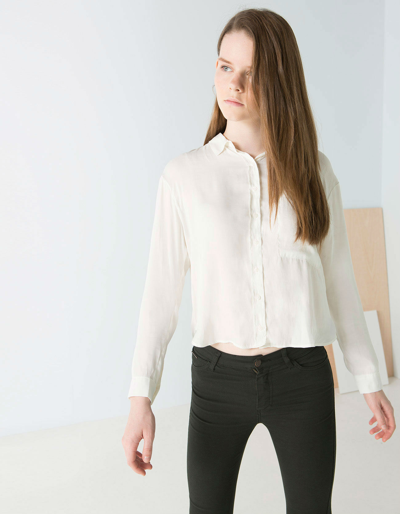 Camisa de satén con detalle de bolsillo (5’99€)