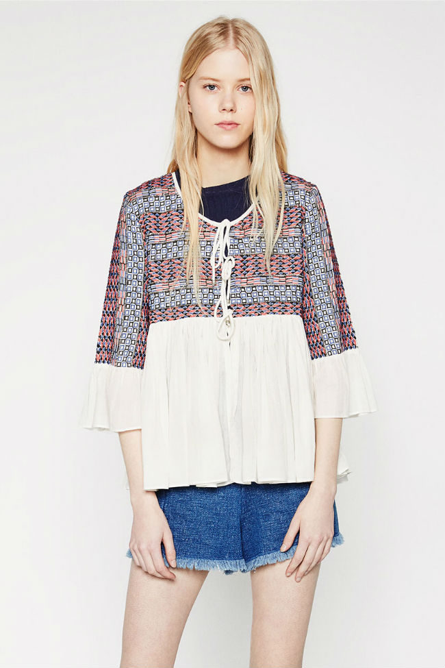 Ahora que las cazadoras vaqueras han acaparado todas nuestras miradas, opta por esta versión de Bershka con print étnico o tribal en tonalidades pastel.