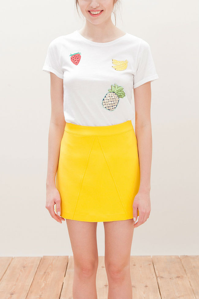 Adereza una falda ajustada de talle alto en amarillo con una sencilla camiseta. Los parches que incluye la t-shirt también cuentan con detalles de este color, lo que hace que la mezcla sea aún más chic. Tanto para el día a día como para eventos especiales, algunas celebrities ya se han apuntado esta tendencia en su lista de imprescindibles. ¿Y tú?