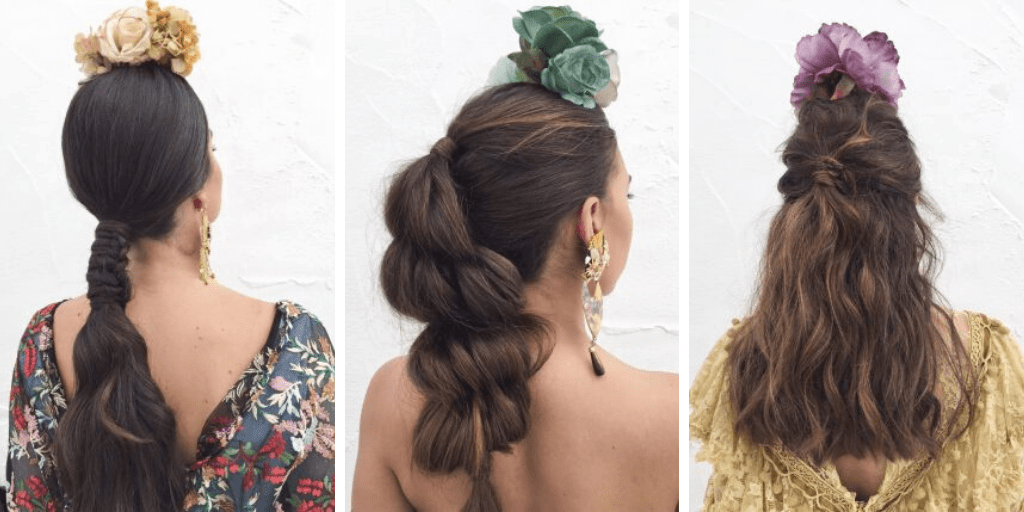 Acompaña tu outfit flamenco con una buena peineta o flor en el pelo, pero sobre todo coge nota, no lleves el pelo suelto, esto te delatará. Pendientes con flecos y de colores. Y no olvides el abanico, se avecinan temperaturas altas propia de este entretiempo.