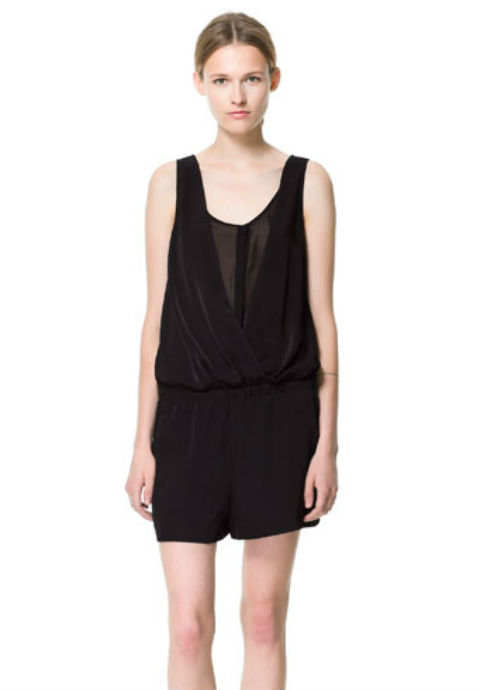 Te proponemos nuestros favoritos low cost para que puedas estar a la última. En Mango podemos encontrar un modelo con el estampado que esta arrasando esta primavera verano 2013, el paisley.  Otro modelo de Mango que te hará conseguir un look formal e ideal para ir arreglada es este mono cruzado de seda. Si lo prefieres corto elige este modelo de Zara negro con trasparencias; con el zapato y los complementos adecuados, estarás radiante.