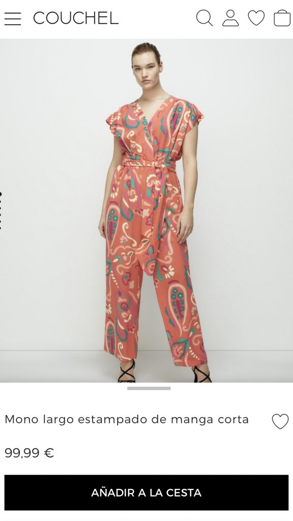 Los estampados siguen jugando un papel clave en la colección con piezas como este mono largo de escote pico en color salmón perfectamente conjuntado con detalles verdes (99,99€)