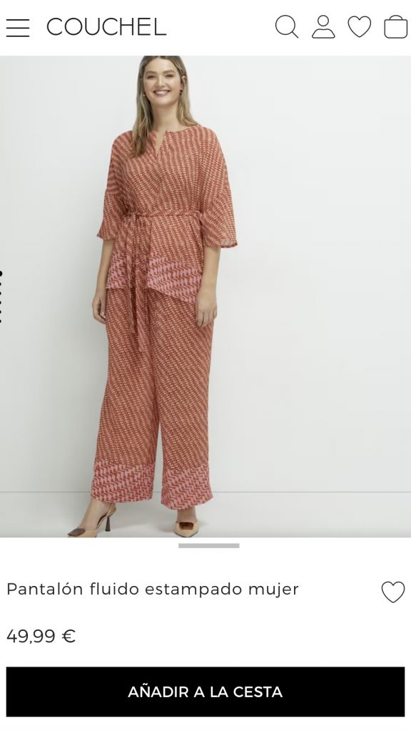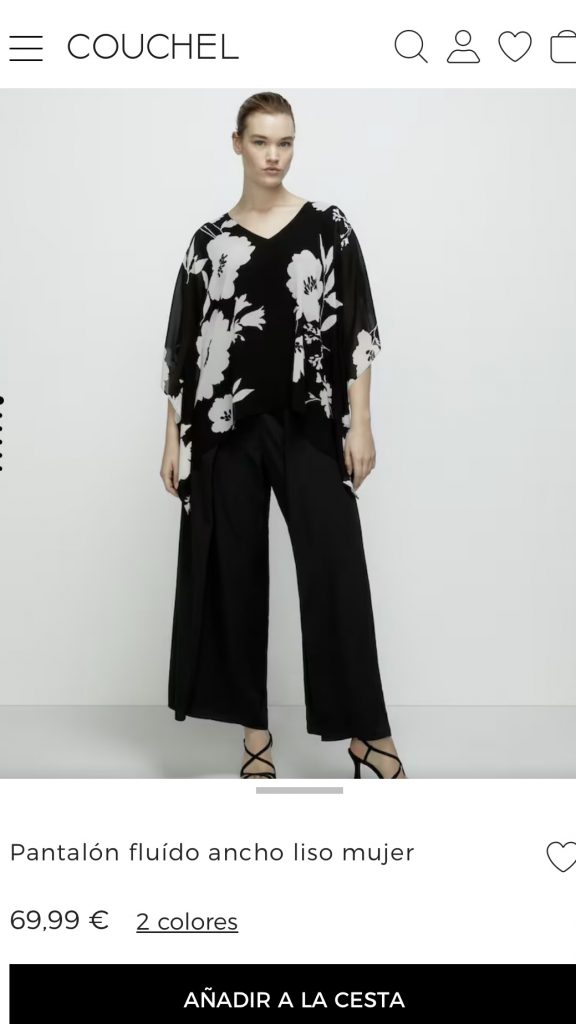 Respecto a los pantalones, una de las grandes insignias de Couchel para este 2023 es aprovechar el movimiento que dan los pantalones anchos fluidos tanto en negro (69,99€), que podrían jugar con el oversize con alguna blusa en la parte superior, como en estampado geométrico de estructura más recta y uniforme (49,99€).