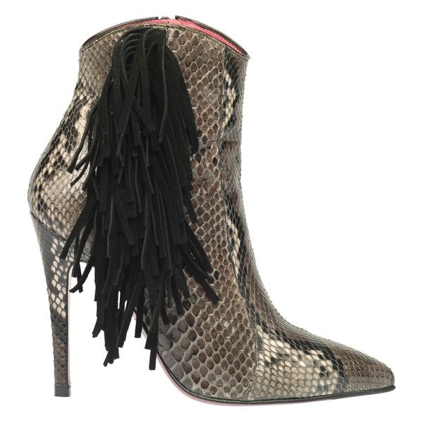 Una amplia colección donde además podemos disfrutar de peep toe en puntera redondeada, botines estilo country de punta afilada en negro y en pitón adornados con flecos y bordados dorados, botas tendencia biker y para las más cómodas las flappers, zapatos estilo años 20 de tacón bajo y ancho diseñados en colores charol.