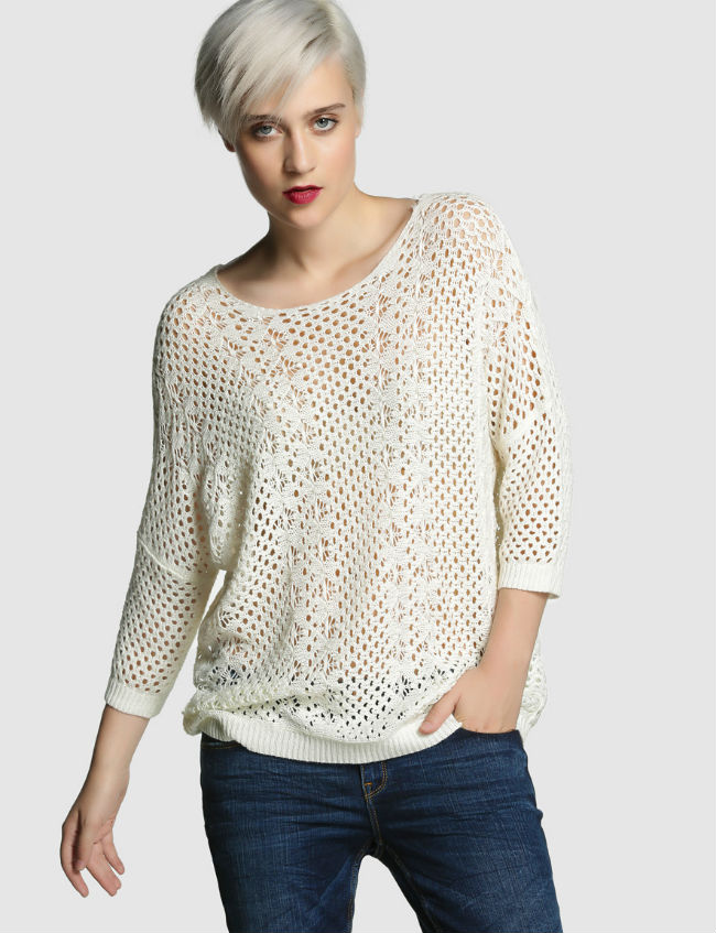 Un jersey calado en blanco potenciará lo que queda de nuestro moreno. Puedes ponértelo con unos jeans efecto slim.