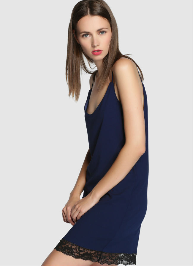 La tendencia lencera es sexy y versátil. Combina este vestido con un cardigan y botines, estarás sensacional.