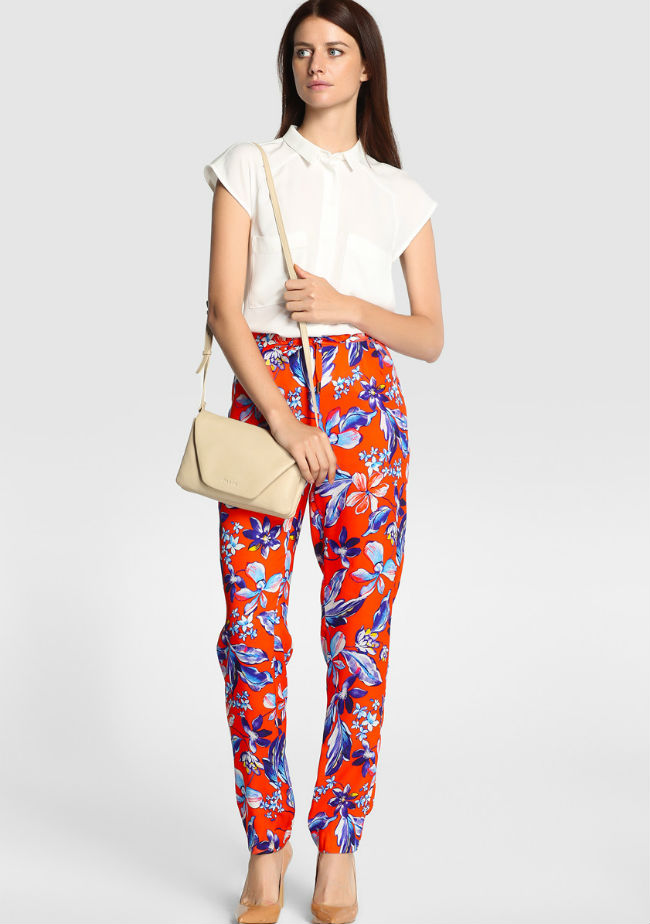 Este verano los pantalones con prints y colores vivos nos han acompañado hasta la saciedad. No los guardes todavía y aprovecha los pocos días del verano para ponértelos con camisetas en colores neutros.
