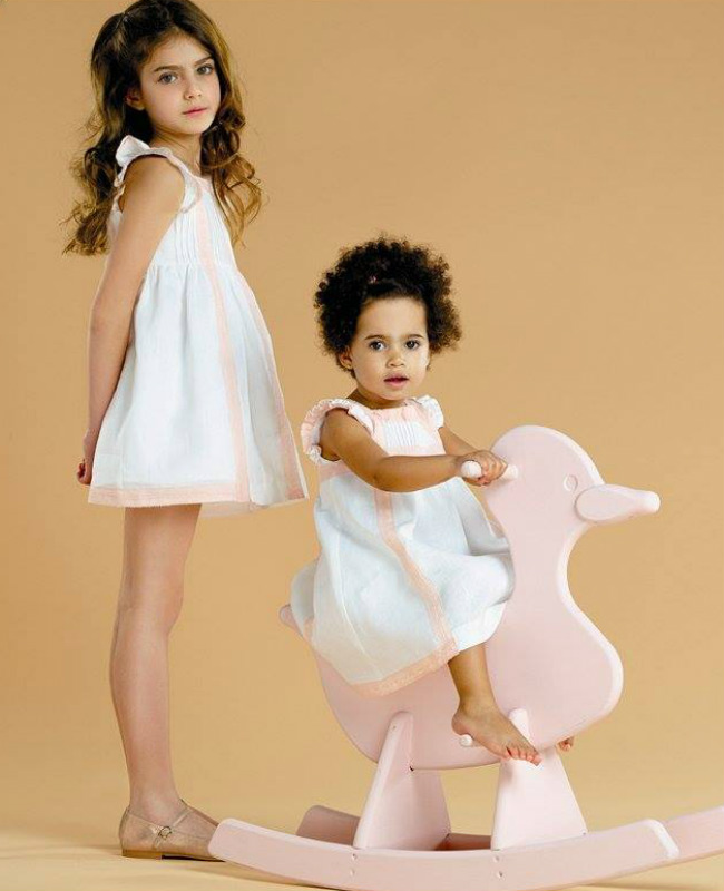 Los colores pastel y blancos son los protagonistas en los vestidos y conjuntos del catálogo de niñas.