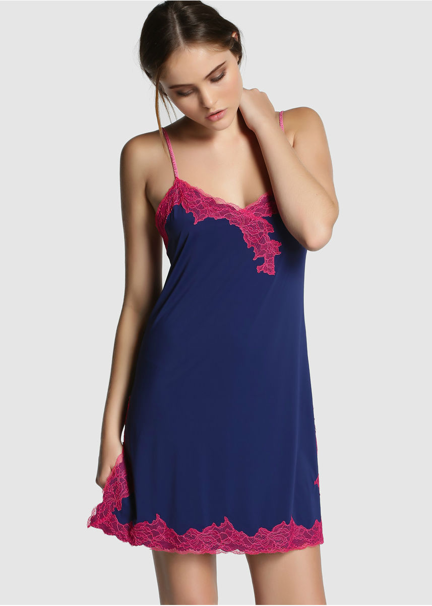 El encaje llama la atención más que nunca gracias a los tonos ácidos. El contraste del fucsia con el azul marino forman un conjunto de 10.