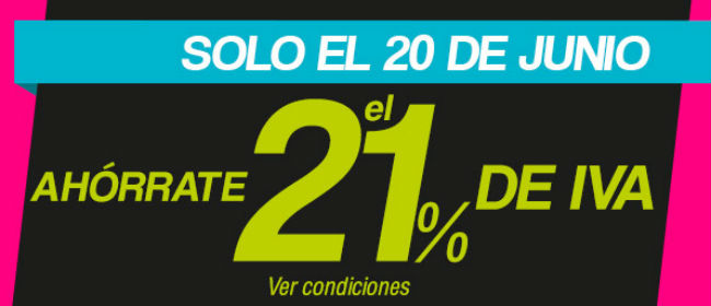 Con la promoción Ahórrate el IVA El Corte Inglés nos permite adquirir artículos de electrónica informática, telefonía, electrodomésticos y videojuegos con descuentos del 21%. Ideal para quienes están pensando en reformar la casa, jubilar algún “aparato” de edad considerable o simplemente darse algún capricho aprovechando esta promoción.