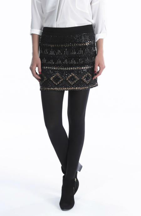 Las faldas de lentejuelas son tendencia la próxima temporada, combinadas con blusas lisas tienes un look chic y glamuroso para que seas la envidia de la oficina. Nos encanta esta negra con un toque étnico por 69,90€.