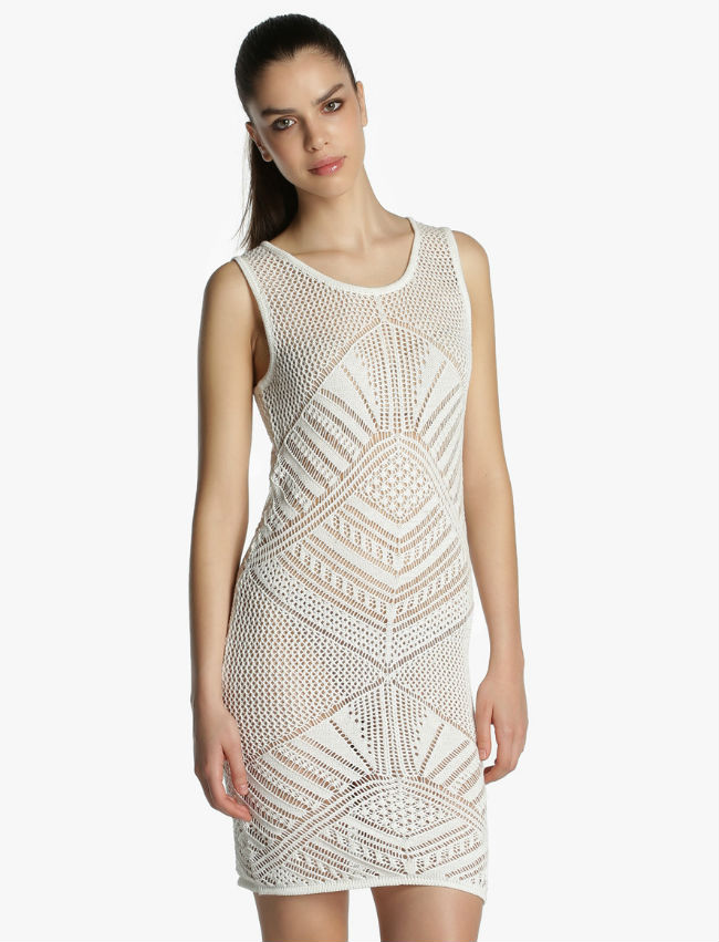 Con un vestido blanco siempre irás muy cool y resaltarás tu moreno de una forma muy sencilla. Este de ganchillo dejará ver pequeñas partes de tu cuerpo.