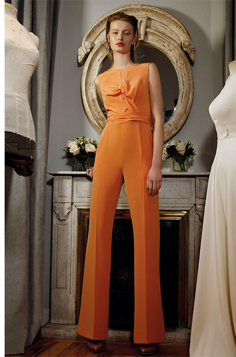 El color naranja resulta increíblemente favorecedor tanto en vestidos largos estilo años 50 o monos de corte palazzo. Una vez más, son los detalles los que marcan la diferencia, solo hay que echar un vistazo a las flores bordadas o las pinzas para darse cuenta de ello.