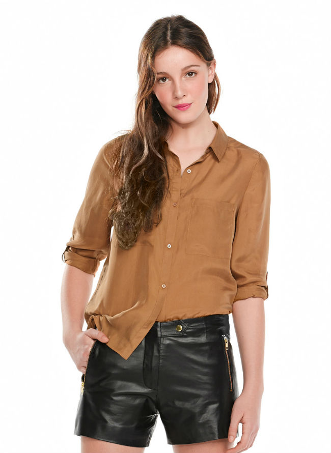 Combina esta camisa en tono tierra con unos vaqueros y te sentirás toda una amazona.