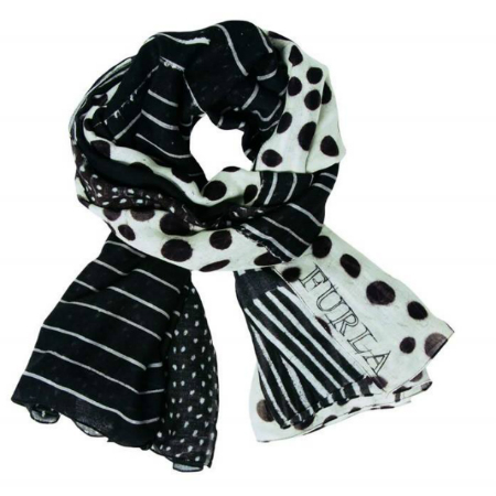 Para protegerte de las bajas temperaturas las bufandas y pañuelos son la mejor opción, por ello son opción perfecta para regalar esta navidades, como este de Furla con un estampado muy original en tonos blanco y negro muy combinable con cualquier prenda. El precio es 134 euros.