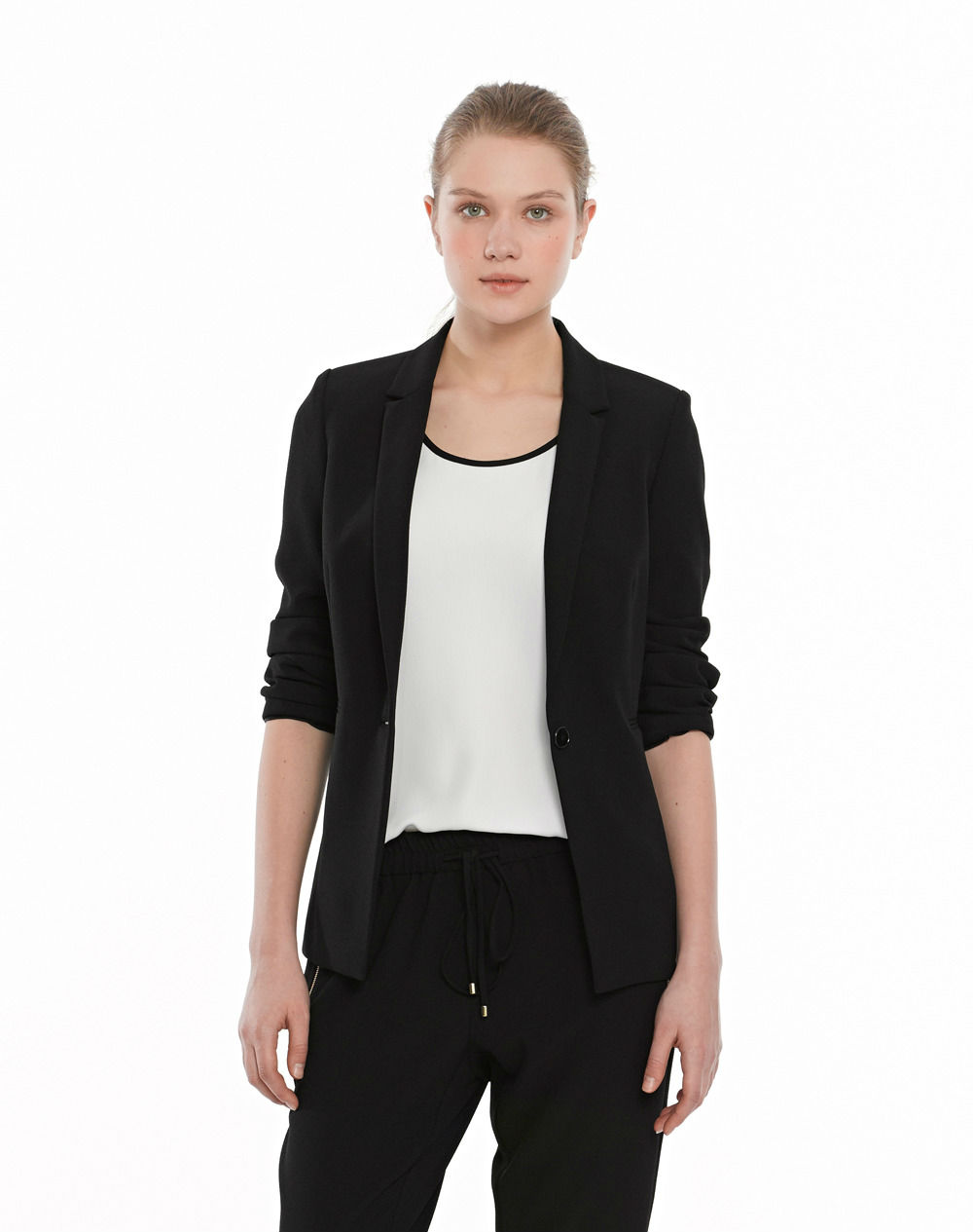 Tintoretto también opta por un clásico, el negro. Puedes encontrarlo en pantalones baggy, blazers o vestidos de efecto cuero. Lo mejor de este tono es poder combinarlo con complementos y otras prendas que destaquen en tu look.