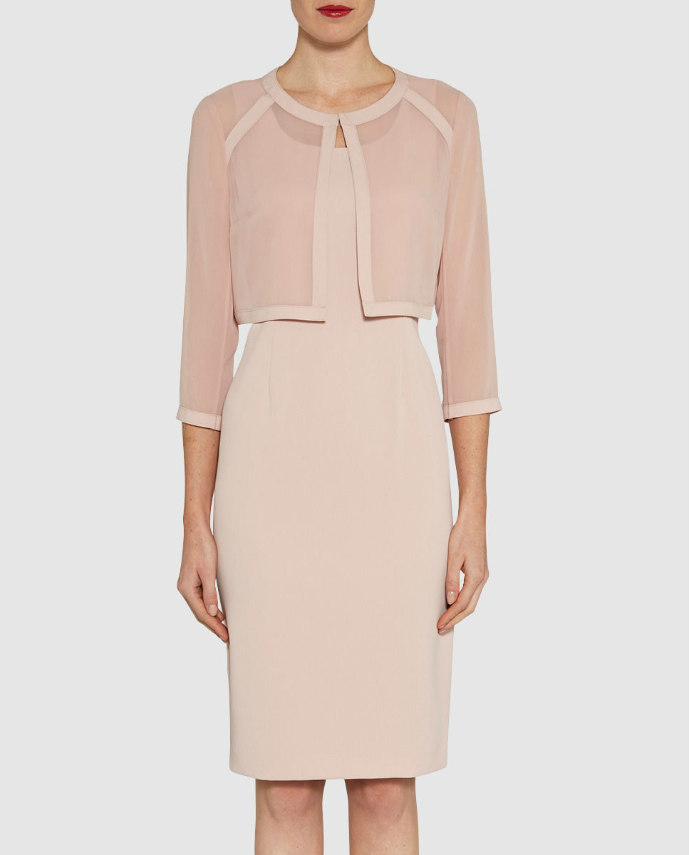Aprovecha que el rosa cuarzo es uno de los colores estrella de la temporada para llevar este conjunto formado por un vestido y una chaqueta en la misma tonalidad. ¡Sencillo pero muy eficaz!