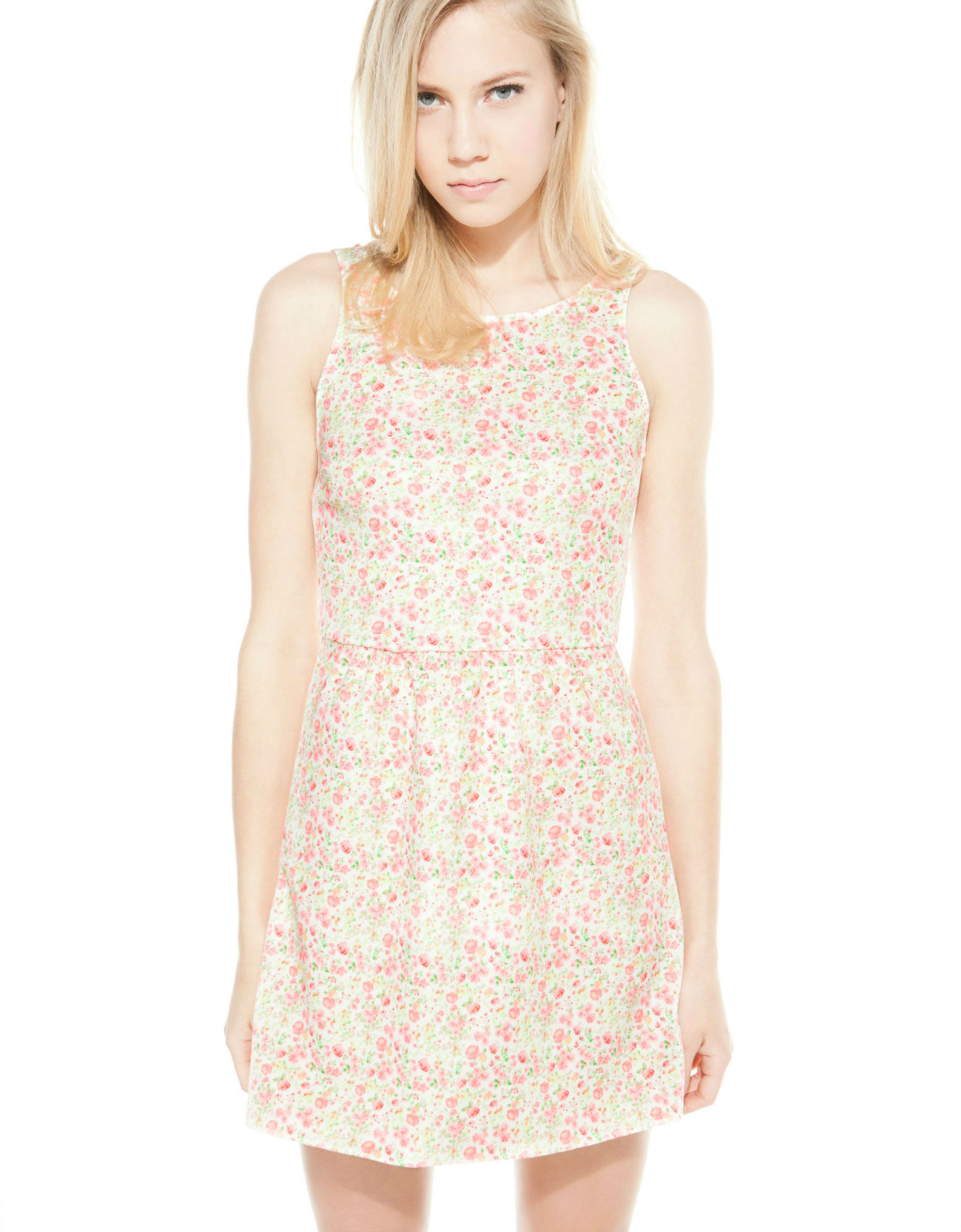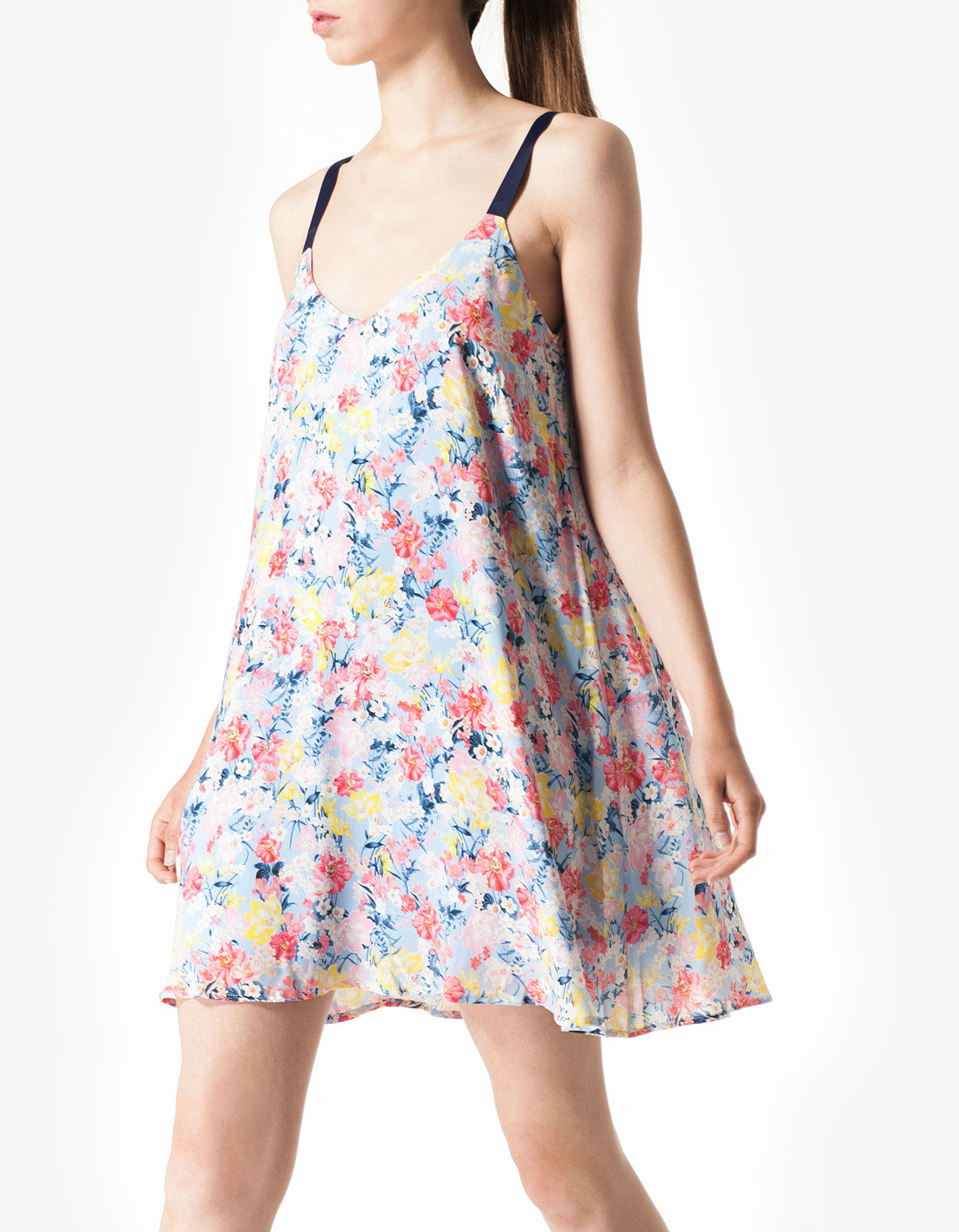 En Bershka tienes vestidos con vuelo en el bajo y diferentes estampados como las flores o las rayas.