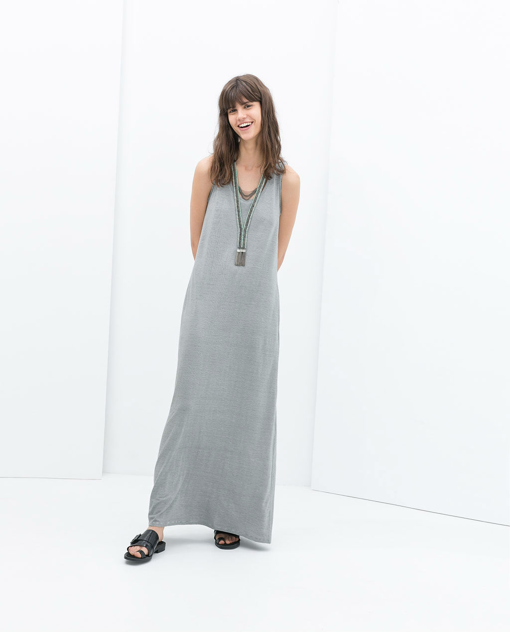 En Zara encontrarás vestidos básicos y en colores neutros. Lo mejor es que puedes conjuntarlos con accesorios de colores intensos!