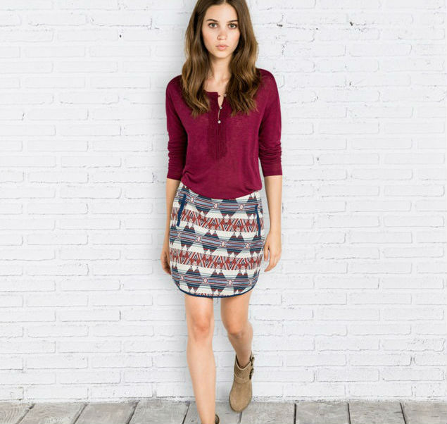 También puedes apostar por la estética étnica, un must have que cargado de motivos y colores de lo más llamativos. Un claro ejemplo es este modelo de Springfield realizada en jacquard y con ribetes tanto en la cintura como en el bajo.