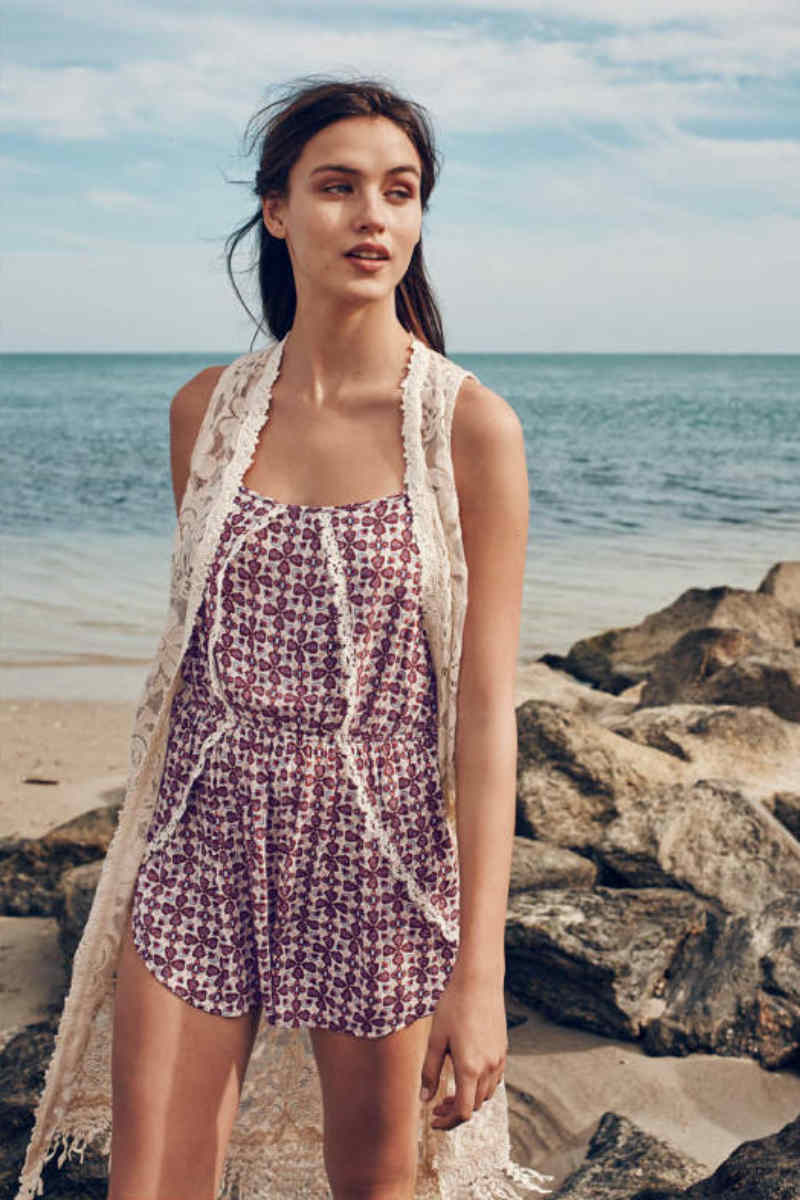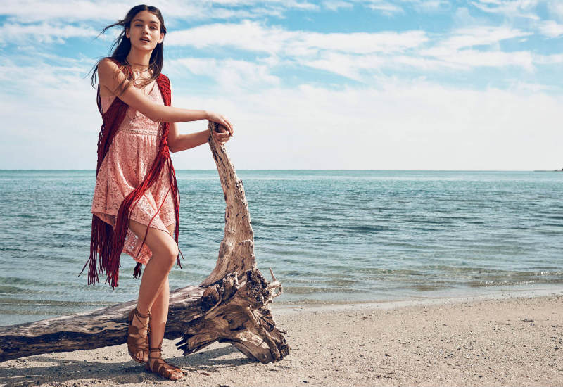 Con un toque boho chic tan de tendencia esta temporada primavera verano 2016, esta nueva colección de H&M nos ha conquistado. Monos cortos de lo más candy, mini faldas con flecos hasta las rodillas en tonos rojo teja súper especial, crochet y encaje. Así es esta breve pero intensa colección estival de H&M.